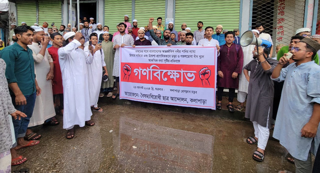 ভারতীয় পানি আগ্রাসনের বিরুদ্ধে কলাপাড়ায় মিছিল