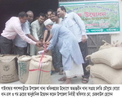 গাইবান্ধার পলাশবাড়ীতে উপজেলা খাদ্য অধিদপ্তরের উদ্যোগে অভ্যন্তরীন খাদ্য সংগ্রহ চলতি মৌসুমে স্থানীয় সরকারি খাদ্য গুদাম কেন্দ্রে বোরো ধান-চাল ও গম ক্রয়ের আনুষ্ঠানিক উদ্বোধন করা হয়েছে।