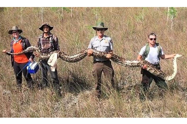মার্কিন যুক্তরাষ্ট্রের শহর ফ্লোরিডায় ১৭ ফিট লম্বা একটি অজগর সাপ ধরেছে বিজ্ঞানীরা। ১৪০ পাউন্ড ওজনের এই অজগরের পেটে ৭৩টি ডিম রয়েছে। এতো বড় অজগর এর আগে কখনো দেখা যায়নি বলে দাবি করেছেন বিজ্ঞানীরা।