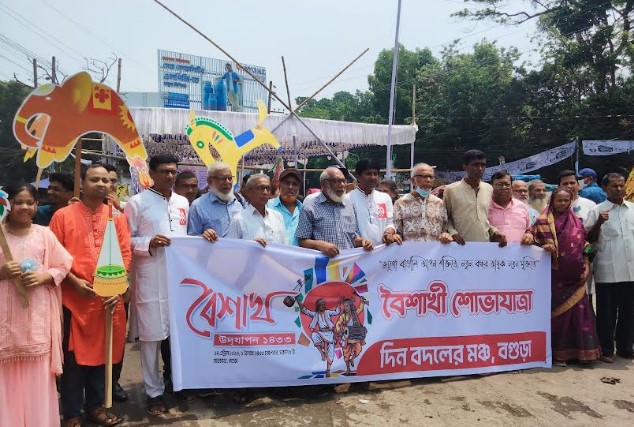 বগুড়ায় উৎসাহ-উদ্দীপনায় দিন বদলের মঞ্চের বর্ষবরণ ও চৈত্রসংক্রান্তি উদযাপন
