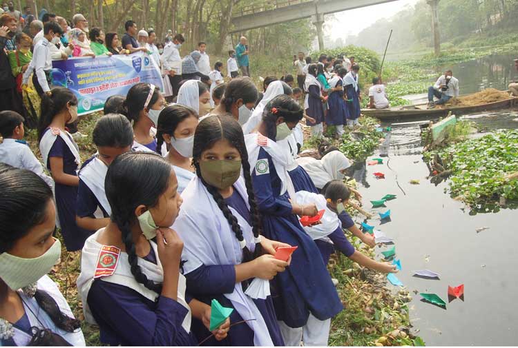 মরা ও দুষণ নদীতে স্বচ্ছ পানির প্রবাহ আর পাল তোলা নৌকা দেখার প্রত্যাশা নিয়ে প্রতিকী কাগজের নৌকা ভাসিয়ে দিয়েছে স্কুল শিক্ষার্থীরা। মঙ্গলবার সকাল ১০টায় বগুড়া জেলা প্রশাসকের কার্যালয়ের সামনে করতোয়া নদীতে প্রায় তিনশতাধিক স্কুল শিক্ষার্থীরা নৌকা দেখবে বলে কাগজের নৌকা ভাসিয়ে দেয়। স্কুল শিক্ষার্থীরা নিজেদের হাতে বানানো কাগজের নৌকাগুলো নদীতে ভাসিয়ে দিয়ে দখল ও দুষণকারিদের বিরুদ্ধে প্রতিবাদ জানান।