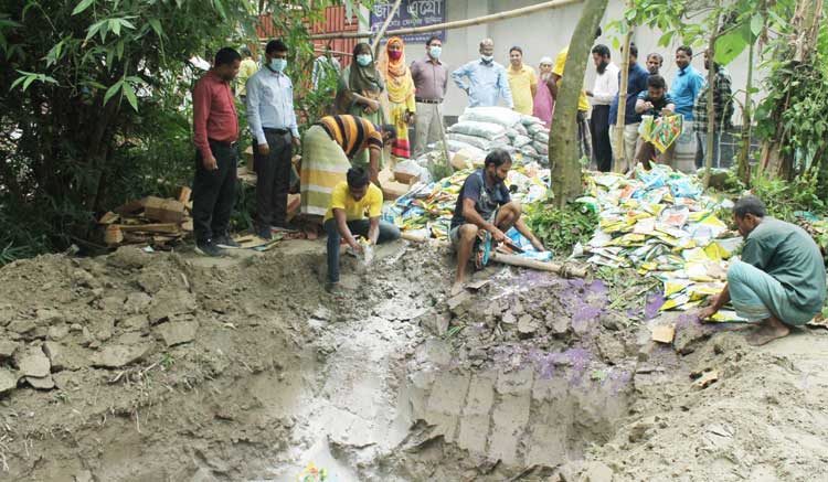 কাউনিয়ায় নকল সার ও কীটনাশক জব্দ এবং ধ্বংস