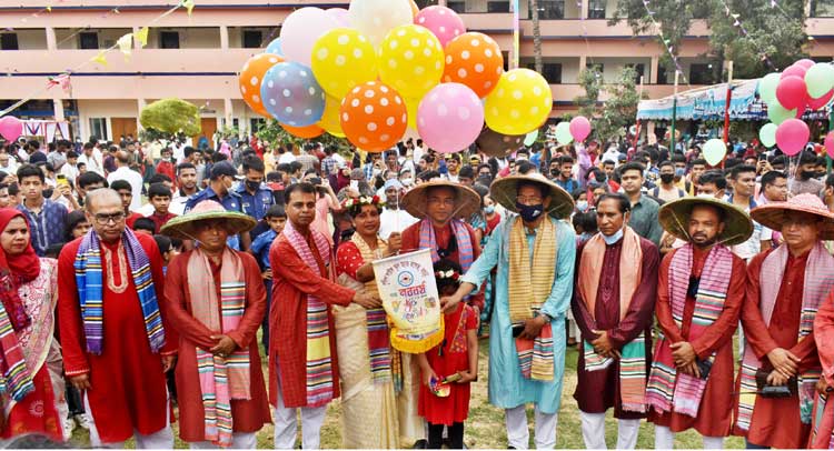বর্ষবরণ অনুষ্ঠানে ফেস্টুন উড়িয়ে উদ্বোধনের পর অতিথিরা মঙ্গল শোভাযাত্রায় অংশ নেন। মঙ্গল শোভাযাত্রা শেষে শিক্ষা প্রতিষ্ঠানের শিক্ষার্থীরা গানে গানে নতুন বছরকে স্বাগত জানায়। এ সময় শিক্ষার্থীরা কবিতা আবৃত্তি, বাঁশি, একক গান পরিবেশন করেন। বর্ষবরণ অনুষ্ঠানে গ্রামবাংলার ঐতিহ্যবাহী লাঠি খেলা ও সাপখেলা প্রদর্শন করা হয়।
