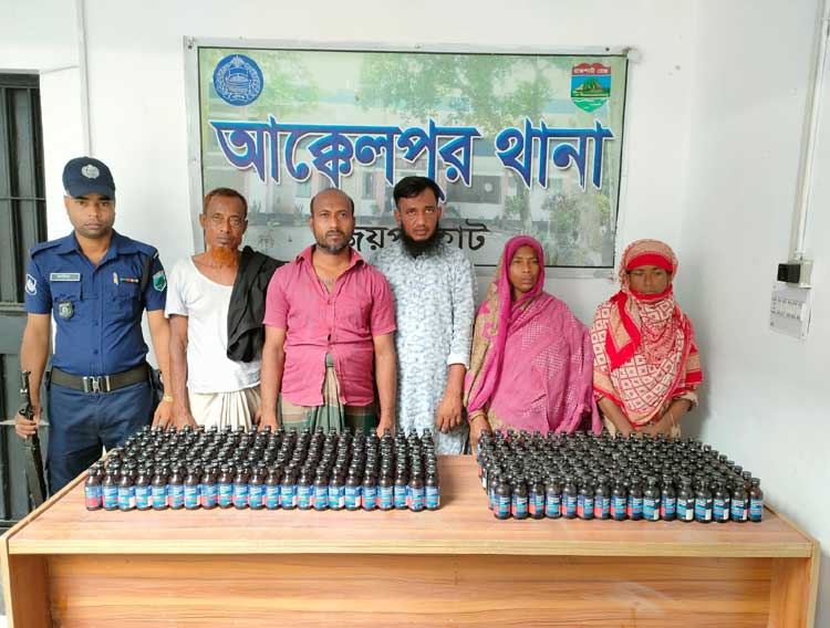 জয়পুরহাটে বিপুল পরিমান ফেন্সিডিলসহ পাঁচ মাদক কারবারি আটক