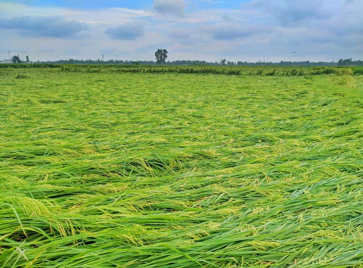 নন্দীগ্রামে কালবৈশাখী ঝড়ে লুটিয়ে পড়েছে বোরো ধান হতাশ কৃষকরা