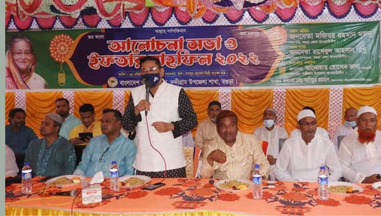 বগুড়ার নন্দীগ্রামে উপজেলা আওয়ামী লীগের ইফতার ও দোয়া মাহফিল অনুষ্ঠিত হয়েছে। গতকাল সোমবার পৌর সদরে মনসুর হোসেন ডিগ্রি কলেজ মাঠে আয়োজিত দোয়া ও ইফতারপূর্ব সভায় উপজেলা আওয়ামী লীগের সভাপতি আনোয়ার হোসেন রানা এলএলবির সভাপতিত্বে প্রধান অতিথির বক্তব্য রাখেন জেলা আওয়ামী লীগের সাধারণ সম্পাদক রাগেবুল আহসান রিপু। বিশেষ অতিথির বক্তব্য রাখেন জেলা আওয়ামী লীগের যুগ্ম সাধারণ সম্পাদক আসাদুর রহমান দুলু। উপস্থিত ছিলেন উপজেলা নির্বাহী অফিসার শিফা নুসরাত। উপজেলা আওয়ামী লীগের সাধারণ সম্পাদক ও পৌরসভার মেয়র আনিছুর রহমানের সঞ্চালনায় আরও বক্তব্য রাখেন থানার ওসি মো. আনোয়ার হোসেন, উপজেলা আওয়ামী লীগের সহ সভাপতি রফিকুল ইসলাম রফিক, সরফুল হক উজ্জল, যুগ্ম সাধারণ সম্পাদক মুকুল হোসেন মুকুল, সাংগঠনিক সম্পাদক আনন্দ কুমার, মামুনুর রশিদ, দপ্তর সম্পাদক ফারুক কামাল, পৌর আওয়ামী লীগের সভাপতি মুক্তার হোসেন বকুল, সিনিয়র সহ সভাপতি সামছুল হক মাস্টার, সাধারণ সম্পাদক পৌরসভার প্যানেল মেয়র শাহিরুল ইসলাম, আওয়ামী লীগ নেতা কালিপদ, মখলেছুর রহমান মিন্টু, মোরশেদুল বারী, নিকুঞ্জ চন্দ্র, জুলফিকার আলী, মহিলা আওয়ামী লীগের সভানেত্রী মাহফুজা চৌধুরী, স্বেচ্ছাসেবক লীগের সভাপতি আবু সাঈদ, সাধারণ সম্পাদক কামরুল হাসান সবুজ, কৃষকলীগের সাধারণ সম্পাদক সাইদ রায়হান মানিক, শ্রমিক লীগের সভাপতি এনামুল হক, সাধারণ সম্পাদক আরাফাত রাজ, ছাত্রলীগের সহ সভাপতি আল নোমান নাদিম, সাধারণ সম্পাদক শুভ আহমেদ, যুগ্ম সাধারণ সম্পাদক আবু তৌহিদ রাজিবসহ উপজেলা, ইউনিয়ন, পৌর ও ওয়ার্ড পর্যায়ের নেতাকর্মীরা উপস্থিত ছিলেন। দেশ ও জাতির কল্যাণে বিশেষ মোনাজাত করা হয়।