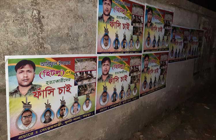 ধুনটে হিটলু হত্যা মামলার আসামীদের ফাঁসির দাবিতে দেয়ালে লাগানো হচ্ছে পোস্টার