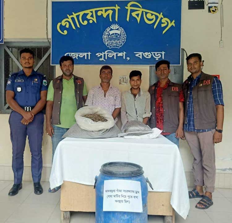 বগুড়ায় মাটিতে পুঁতে রাখা ৯ কেজি গাঁজাসহ ২ জন গ্রেফতার