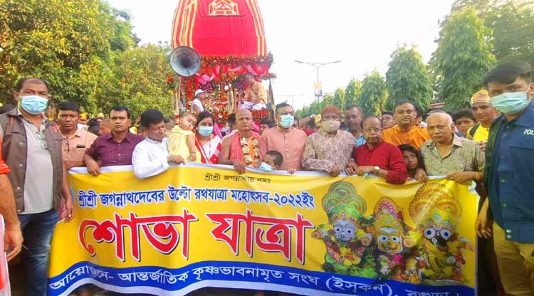 বগুড়ায় উৎসবমুখরভাবে জগন্নাথ দেবের উল্টো রথযাত্রা অনুষ্ঠিত