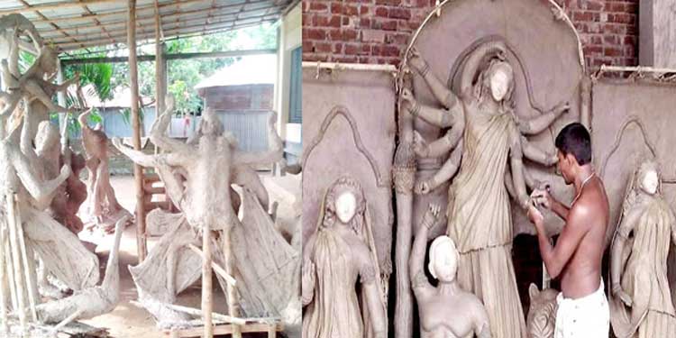 গোবিন্দগঞ্জে প্রতিমা তৈরিতে ব্যস্ত কারিগররা