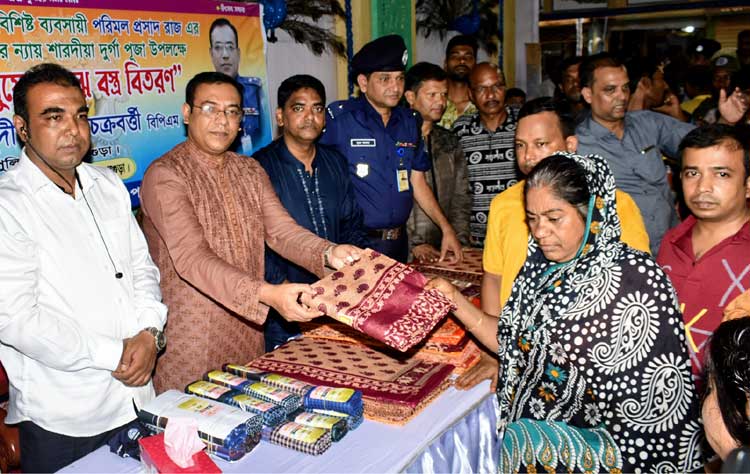 শারদীয়া দুর্গাপূজা উপলক্ষে বগুড়ায় শনিবার সকালে শহরের চেলোপাড়ায় দুর্জয় ক্লাব প্রাঙ্গণে শিব শঙ্কর স্মৃতি স্মরণে ব্যবসায়ী নেতা পরিমল প্রসাদ রাজের উদ্যোগে মহাষষ্ঠীতে শতাধিক অসহায় মানুষের মাঝে বস্ত্র বিতরণ করা হয়েছে।