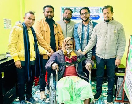 অসহায় বৃদ্ধাকে হুইলচেয়ার দিল সিংড়া মডেল প্রেসক্লাব
