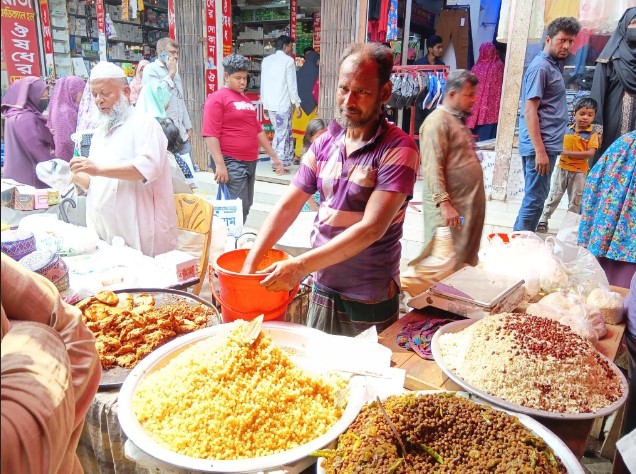 বাজারগুলোতে ছোলা,বুন্দিয়া,মুড়ি, পিয়াজু,বেগুনি,আলুর চপ,জিলাপি, খেজুর,নিমকিসহ নানা মুখরোচক খাবার সাজিয়ে রাখা হয়।দুপুরের পর থেকেই দোকানিরা ইফতারি প্রস্তুত করে রাখেন,তবে বিকেলের দিকে ক্রেতা-বিক্রেতার উপচে পড়া ভীড়ে পুরো বাজার প্রাণবন্ত হয়ে ওঠে।