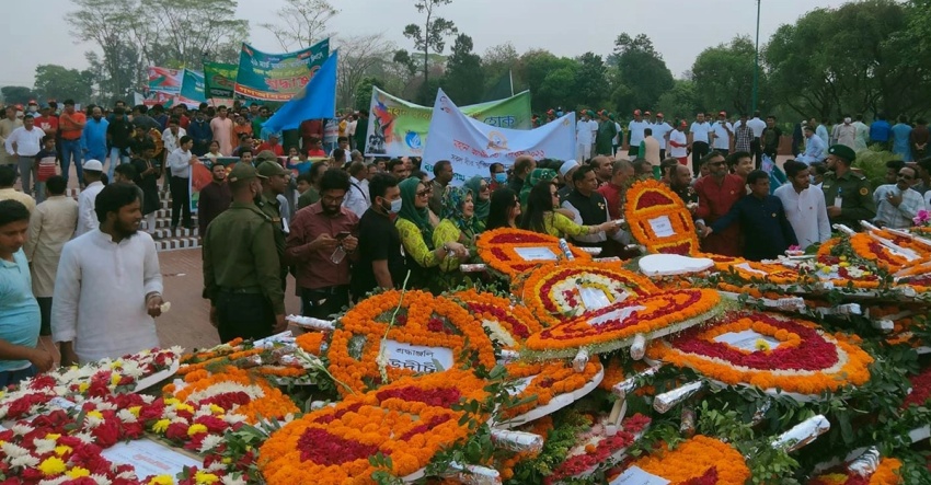 শ্রদ্ধার ফুলে ভরে গেছে স্মৃতিসৌধ
