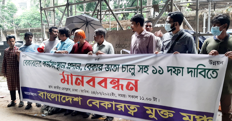 বেকারদের স্থায়ী কর্মসংস্থান-ভাতাসহ ১১ দাবিতে মানববন্ধন
