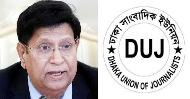 দেশের সাংবাদিকতা নিয়ে পররাষ্ট্রমন্ত্রী এ কে আব্দুল মোমেনের ‘অসৌজন্যমূলক’ মন্তব্যের তীব্র নিন্দা ও প্রতিবাদ জানিয়েছে ঢাকা সাংবাদিক ইউনিয়ন (ডিইউজে)।
