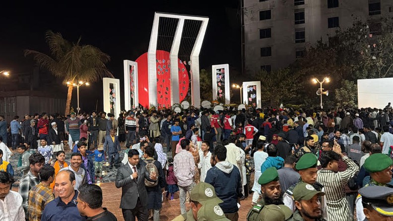 রাজশাহীতে নবনির্মিত কেন্দ্রীয় শহীদ মিনারে মানুষের ঢল